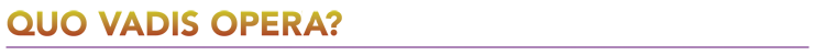 Opera houses are closing down, budget are cut, opera ensembles are merged, opera agencies are irritated, and cultural affairs authorities are at a loss. How does opera as an art form develop, and into which direction? What is it's future? Several answers present themselves, but there is no unambiguous sense of direction.